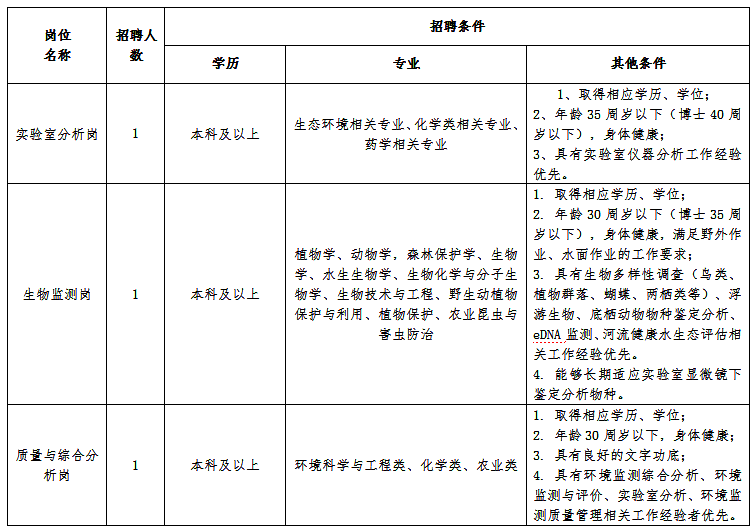 江蘇省泰州環(huán)境監(jiān)測中心為全額撥款事業(yè)單位,隸屬于江蘇省生態(tài)環(huán)境廳,是從事生態(tài)環(huán)境監(jiān)測和科研,為環(huán)境管理和社會(huì)經(jīng)濟(jì)服務(wù)的環(huán)境監(jiān)測機(jī)構(gòu)。根據(jù)工作需要,現(xiàn)面向社會(huì)招聘3名工作人員,派遣至江蘇省泰州環(huán)境監(jiān)測中心從事與環(huán)境監(jiān)測相關(guān)工作。具體要求如下: