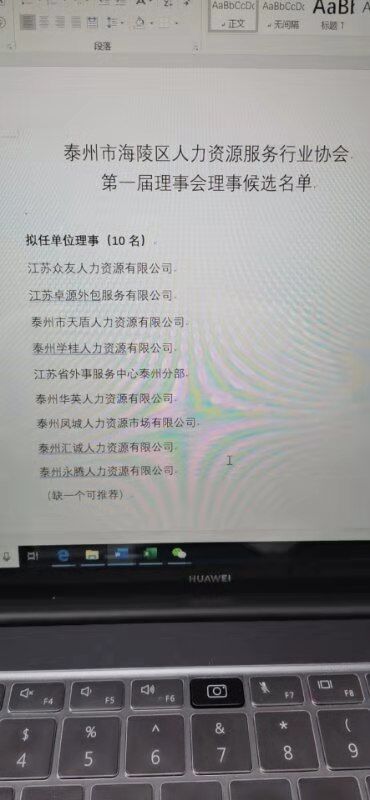 泰州市海陵區人力資源服務行業協會屆理事會理事候選名單